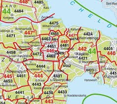 In onderstaand voorbeeld vormen de postcodes 4481,4475,4465,4464,4461 ,4462, 4482,4421 en 4474 een postcoderoos. De productie-installatie kan op iedere willekeurige plaats binnen dit gebied zijn gesitueerd.